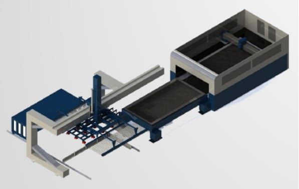 Soluzioni complete per il taglio laser automatico di tubi. Carico, taglio e scarico di tubi in fasci in modo completamente automatico